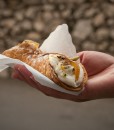 Cannoli is an Italian pastry dessert of the Sicily region, in the Sicilian language meaning “little tube”, which is staple of Sicilian cuisine with the etymology stemming from the Arabic “Qanawat”. Cannoli consist of tube-shaped shells of fried pastry dough that could be filled with a sweet, creamy filling usually containing ricotta. They range in size from “cannulicchi”, no bigger than a finger, to the fist-sized proportions typically found south of Palermo, Sicily, in Piana degli Albanesi.