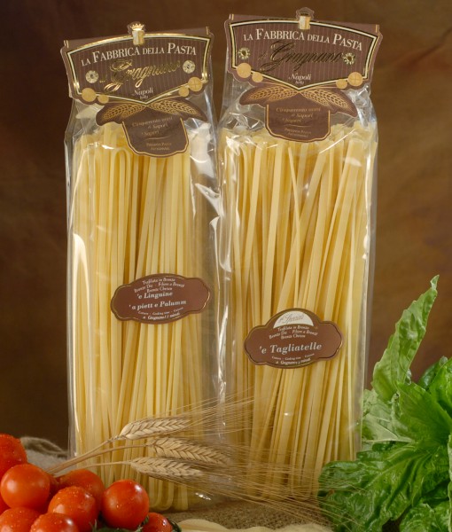 La Fabbrica Della Pasta creates its delicious pasta with water from the springs of Mount Vesuvius and the finest durum wheat semolina then finally died the traditional bronze colour using dyes.